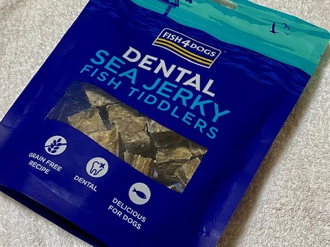 タラの皮を乾燥後、四角形に圧縮しただけのシンプルなデンタルケアおやつ。