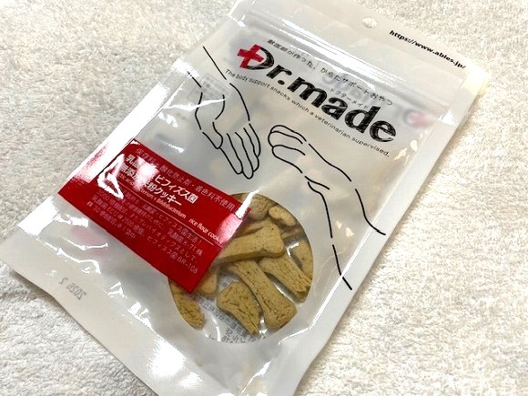 Dr.madeは、栄養学の専門医である岩切獣医師との共同開発により作られた、からだサポートおやつです。 Dr.made米粉クッキーは、1袋あたり合計5,530億個の乳酸菌・ビフィズス菌を配合。 皮膚や被毛の健康維持のために、乳酸菌K-71株3000億個配合。 プレバイオティクスとして、乳酸菌EC12株2,500億個、ビフィズス菌BR-108株30億個配合。